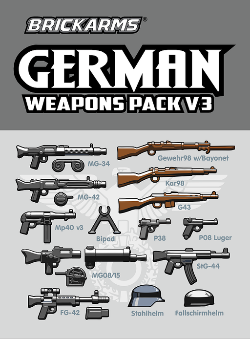 Original price £12.00 - Original price £12.00Original price£12.00£12.00 - £12.00Current price £12.00BrickArms German Weapons Pack V3 These Custom BrickArms Weapons are ABS Injection Moulded to ensure lasting durability, detail and Premium Quality....